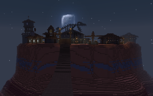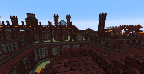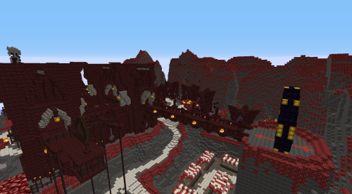 This village is located in the hellish mountains south of Chaos Maze. Brave heroes from the Kingdom founded a settlement here where players can rent a house or trade. There is access to a gate to the Nether that leads directly to a pigman village where quests can be completed. There are also two entrances to the hellish mines where players can mine Netherrack. Since traveling on foot is inconvenient and time-consuming, a teleportation platform (teleportpad) has been built here, allowing players to teleport back to the safe lands of the Kingdom.