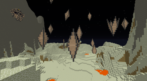 Northwest of the Chaos Maze labyrinth lies the mysterious world of Enderie, home to Endermen. Levitating strange crystals and an enderman fortress can be found here, hiding more than one treasure chest. The black, three-block-tall guards, however, tolerate no intruders in their territory. Any player who dares to enter these parts is immediately attacked and must fight for their life every meter to reach the desired treasure. In the chests, there are Ender pearls, Endstone, and if the player is truly a child of fortune, it is even possible to find a Beacon here, which is otherwise unobtainable on the server.